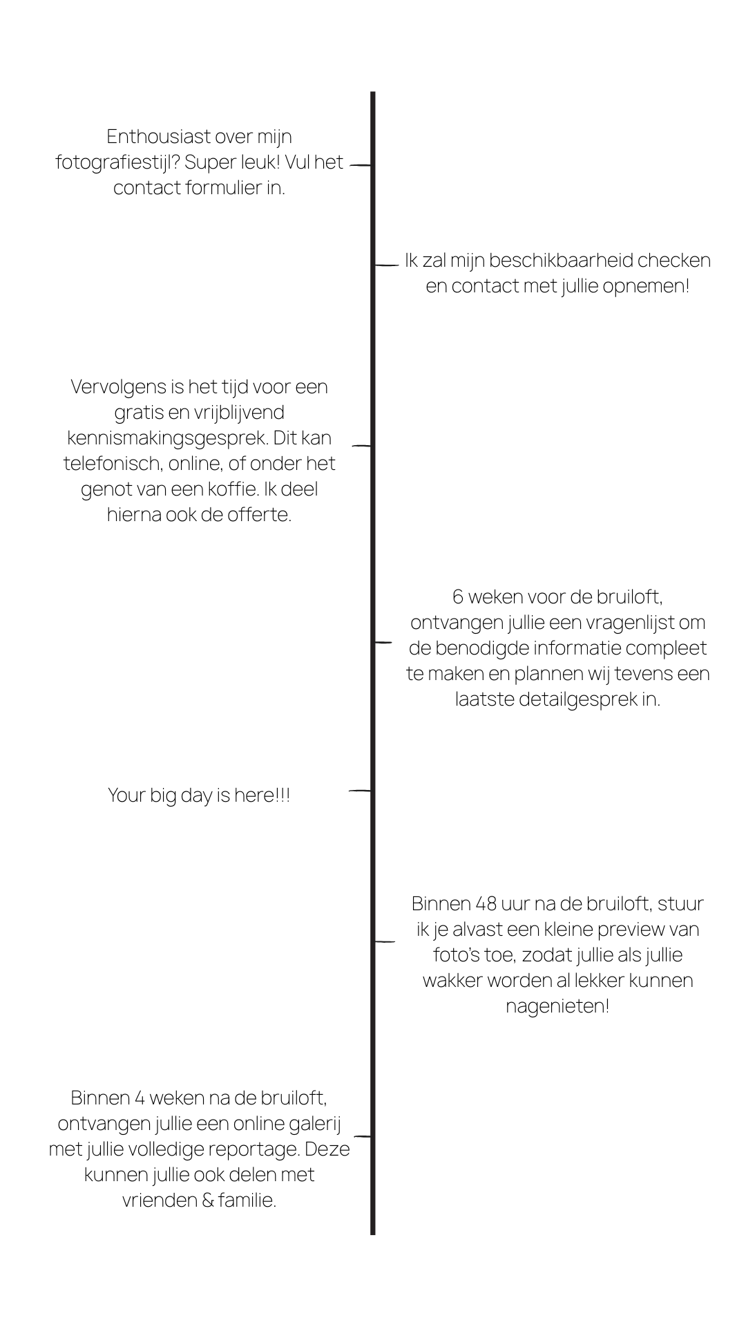 Doordat ik ondertussen zoveel verschillende bruiloften heb mogen fotograferen, weet ik precies hoe ik moet inspelen op onverwachte situaties. En ik ken het verloop van een trouwdag van begin tot eind. Daardoor ben ik niet alleen jullie fotograaf, maar adviseer en denk ik ook mee waar nodig.